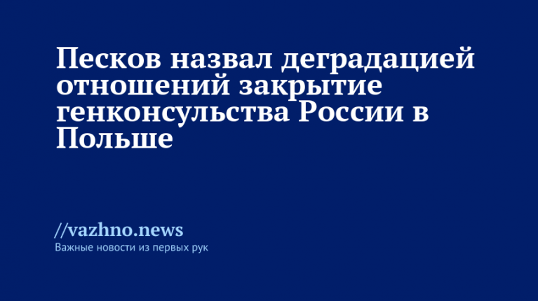 «Это, наверное, проявление этой деградации, желание польских властей свести до нуля какие-либо возможности консульских или дипломатических отношений», — отметил Песков в ходе брифинга.