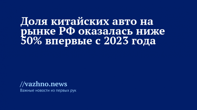 В октябре этого года доля новых легковых автомобилей китайских марок, реализованных на российском рынке, составила 49,6% от общего объема продаж (82,2 тыс. единиц). Впервые ниже уровня в 50% этот показатель отмечался более двух лет назад, отмечает аналитическое агентство «Автостат» в материале от 19 ноября.