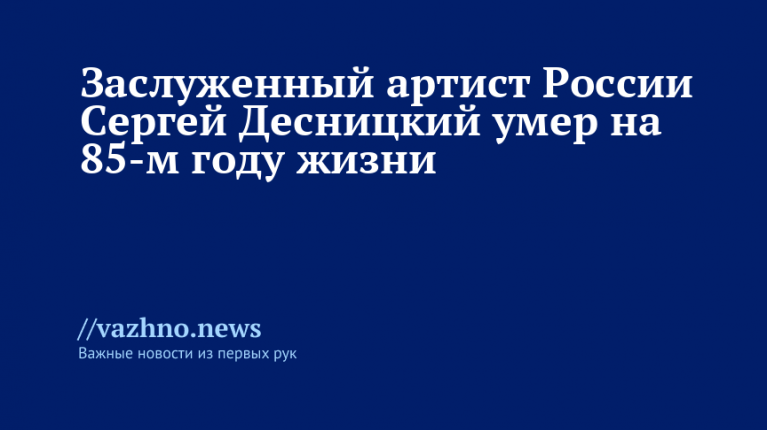 «Сегодня ночью не стало заслуженного артиста России Сергея Глебовича Десницкого. Грядущей весной ему могло бы исполниться 85 лет», — указано в сообщении.