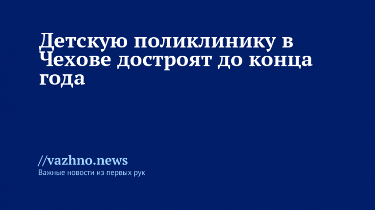 До конца текущего 2025 года планируют завершить строительство новой детской поликлиники в Чехове. По информации пресс-службы главного управления госстройнадзора Московской области, степень готовности объекта на данный момент составляет 65%.