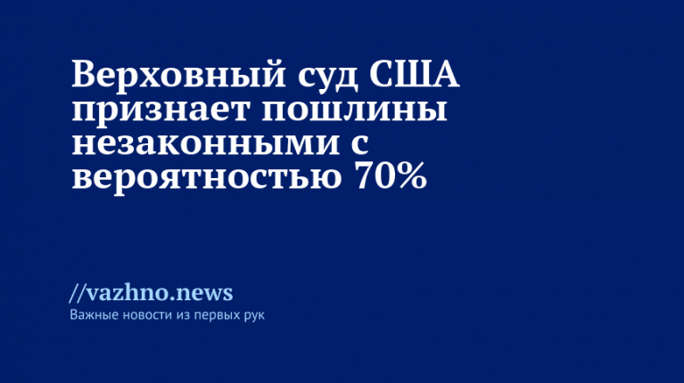 Вероятность того, что Верховный суд США признает торговые пошлины глава Белого дома Дональда Трампа незаконными, составляет порядка 70%. Это следует из консенсус-прогноза «Известий».