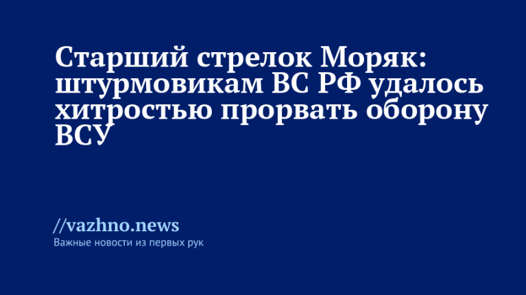 Старший стрелок Моряк: штурмовики РФ хитростью прорвали оборону ВСУ