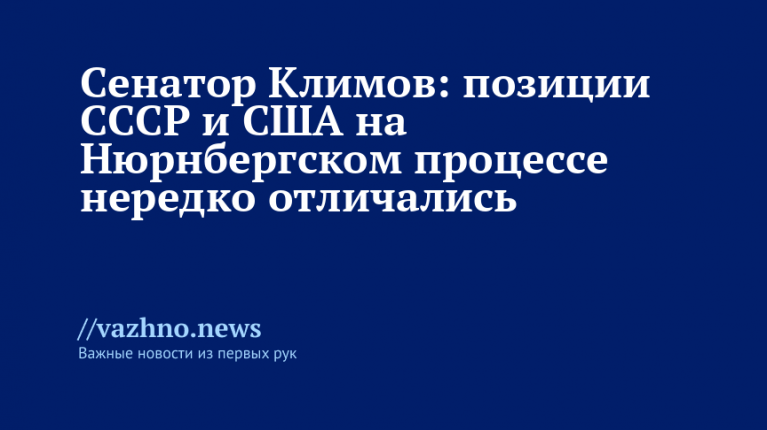 Сенатор Климов: СССР и США часто расходились на Нюрнбергском процессе