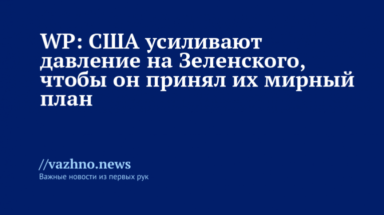 «Официальные лица США оказывают на него (Зеленского. — Ред.) все большее давление, чтобы он принял соглашение о прекращении », — указано в материале.