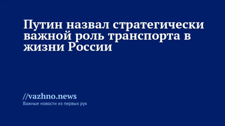 Президент России Владимир Путин в обращении к работникам и ветеранам транспортной отрасли подчеркнул стратегическую роль транспорта для реализации национальных целей развития страны. Его послание размещено 20 ноября на сайте Кремля.