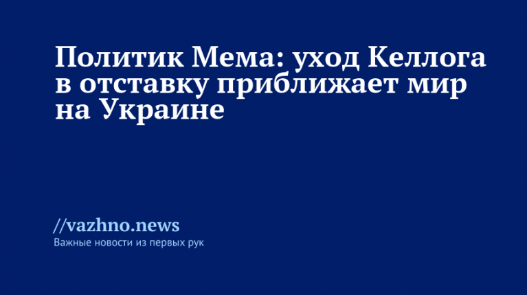 Уход в отставку спецпосланника президента США Дональда Трампа Кита Келлога может способствовать скорейшему завершению конфликта на Украине. Такое мнение 20 ноября высказал член финской национально-консервативной партии «Альянс свободы» Армандо Мема.