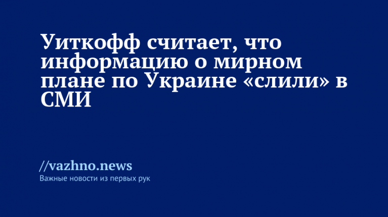 Уиткофф: данные о мирном плане по Украине «слили» в СМИ
