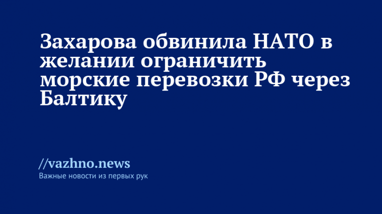 Официальный представитель МИД Мария Захарова 20 ноября заявила, что НАТО стремится максимально ограничить морские грузоперевозки, направляемые в интересах России, через акваторию Балтийского моря.