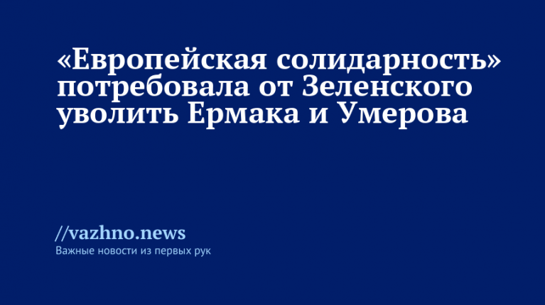 Украинская партия «Европейская солидарность» внесла в Верховную раду проект постановления, в котором требует от президента Украины Владимиру Зеленскому уволить с занимаемых должностей руководителя офиса президента Андрея Ермака и председателя Совета национальной безопасности и обороны Рустема Умерова. О подаче этого документа 20 ноября в своем Telegram-канале сообщила депутат от партии Ирина Геращенко.