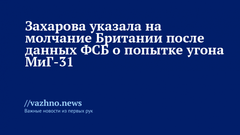 Со стороны Лондона в Москву не поступало никакой реакции на сообщение Федеральной службы безопасности России о срыве совместной операции украинской и британской разведок по попытке угона российского истребителя МиГ-31. Об этом 20 ноября заявила официальный представитель МИД РФ Мария Захарова.