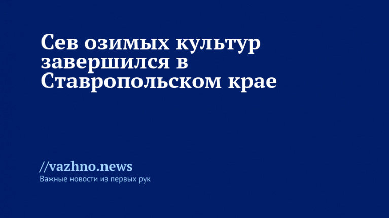 Аграрии Ставропольского края завершили посев озимых культур: работы по севу окончены, и в целом освоена примерно двухмиллионная площадь полей — около 2 млн га. Это итог полевых работ аграрного сектора региона.