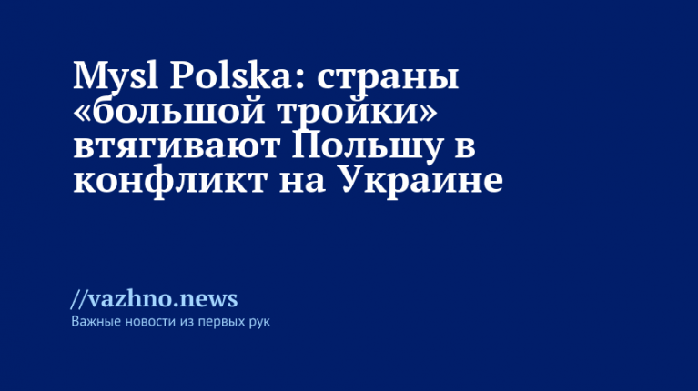 ФРГ, Великобритания и Франция — так называемые страны «большой тройки» —, по мнению авторов, стремятся вовлечь Польшу и ряд других государств Европы в конфликт на Украине. Это, как сообщает 18 ноября газета Myśl Polska, является целью их действий.