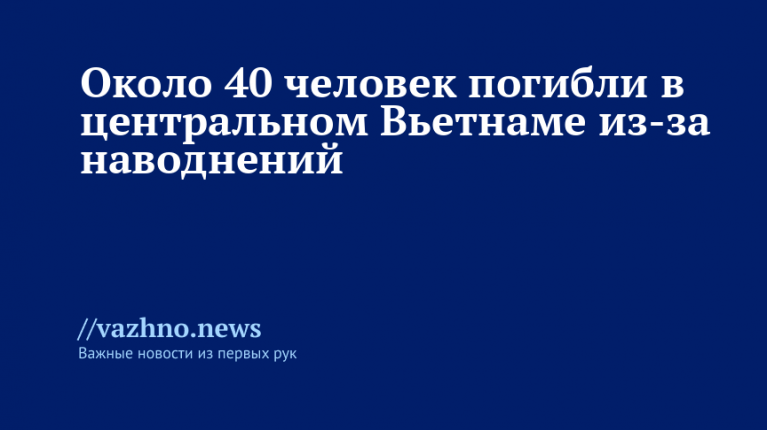 «Наводнения и оползни в центральных и южных регионах Вьетнама привели к гибели как минимум 40 человек и десяти пропавших без вести», — говорится в публикации.