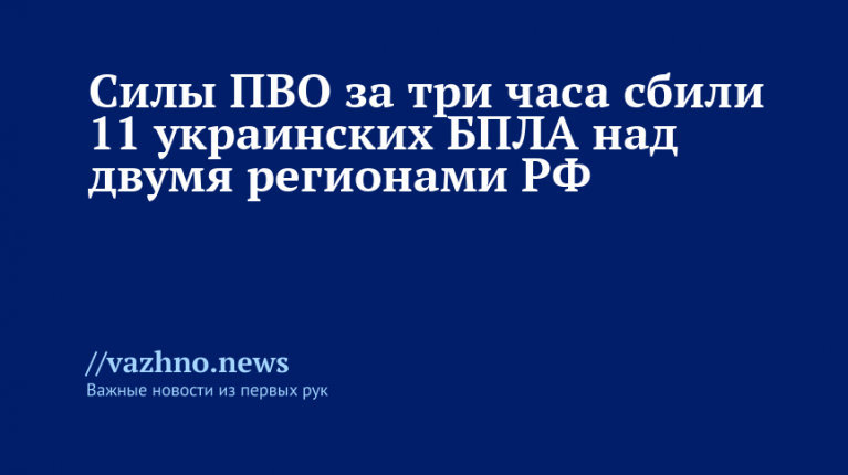 ПВО за 3 часа сбили 11 украинских БПЛА над двумя регионами РФ