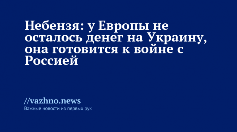 «У Европы уже не осталось денег на Украину, ей надо перевооружать свои армии, чтобы, как они в безумии кликушествуют, готовиться в 2030 году воевать с Россией», — отметил Небензя, выступая на заседании СБ ООН.