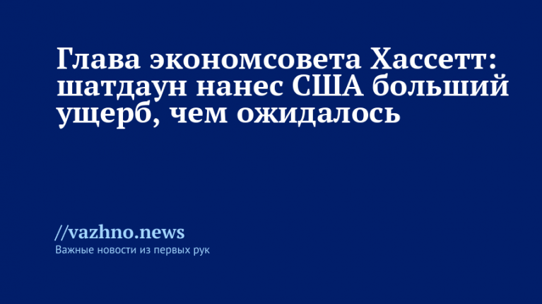 Самая продолжительная в истории США приостановка работы правительства — шатдаун — нанесла намного больший урон, чем ожидалось, и потому чтобы заметить признаки восстановления потребуется время. С таким заявлением 20 ноября выступил руководитель Национального экономического совета Белого дома Кевин Хассетт.