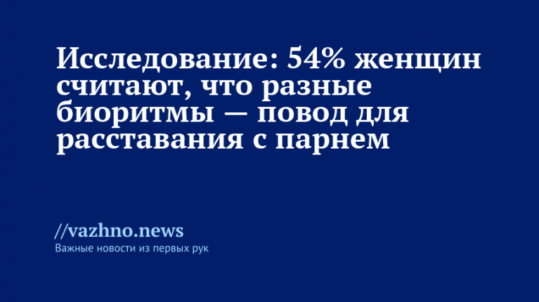 «Среди мужчин готовность менять свои биоритмы ради второй половинки выше, чем среди женщин, — 73% против 50%. Вместе с тем 54% женщин считают, что разные биоритмы могут стать поводом для расставания, тогда как среди мужчин так ответили лишь 39%», — указали аналитики.