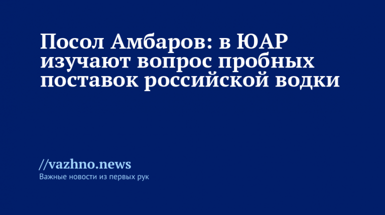 По сведениям посла России в ЮАР Романа Амбарова, озвученным 21 ноября, в Южной Африке отмечается заметный интерес к российской водке, и прорабатывается вопрос о проведении пробных поставок.