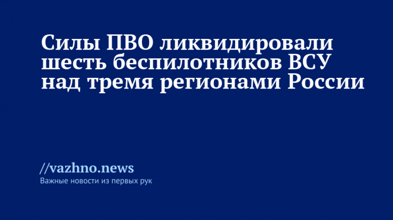 ПВО уничтожили шесть беспилотников ВСУ над тремя регионами РФ