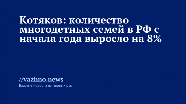 Котяков подчеркнул, что число детей, растущих в многодетных семьях, продолжает увеличиваться. По его данным, если ранее таких детей насчитывалось 8,9 млн, то по итогам десяти месяцев 2025 года их стало 9,2 млн — прирост почти в 300 тыс. Кроме того, министр сообщил о планах открытия новых центров демографических компетенций в 12 регионах страны.