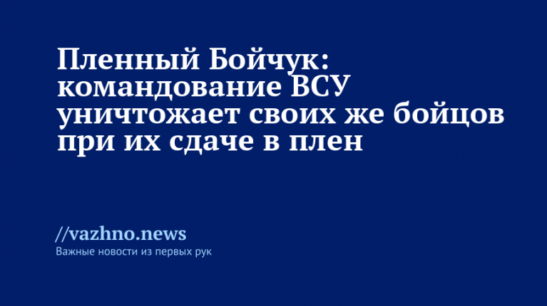 Командование Вооруженных сил Украины (ВСУ) при попытке сдать украинских боевиков в плен уничтожает своих же бойцов. Об этом 21 ноября заявил пленный военнослужащий 42-й бригады ВСУ Александр Бойчук.
