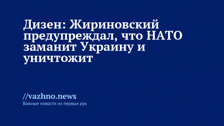 Политолог также привел в пример утверждение экс-лидера ЛДПР о том, что Украина будет использована Североатлантическим альянсом в роли линии фронта против России. Помимо этого, Дизен приложил к своей публикации соответствующий фрагмент выступления Жириновского.