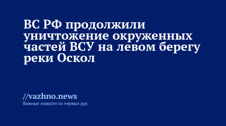 «Продолжается уничтожение формирований ВСУ, окруженных на левом берегу реки Оскол», — говорится в сообщении.