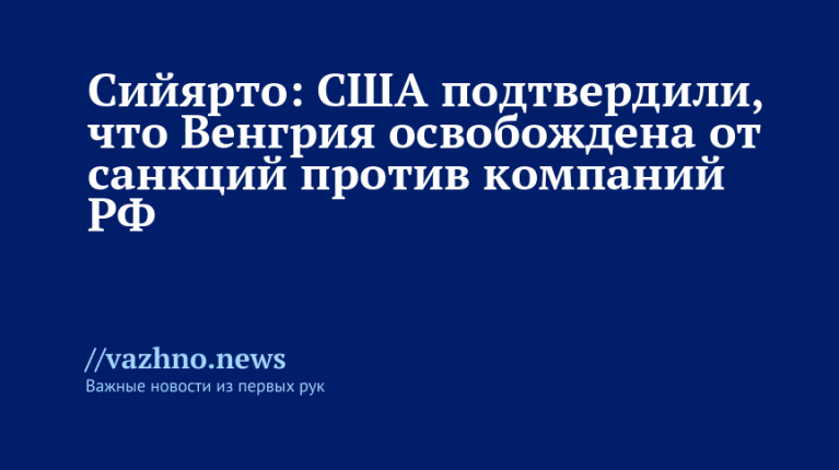 «Американские партнеры проинформировали нас о том, что с сегодняшнего дня вступят в силу решения США, которые освобождают Венгрию от введенных санкций на поставки нефти [из РФ]», — отметил министр на пресс-конференции, трансляцию вел телеканал М1.