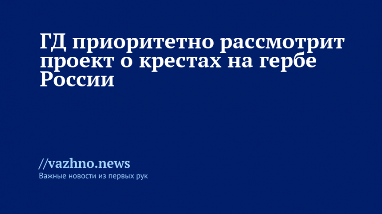 Накануне в ГД внесли законопроект, закрепляющий наличие крестов на российском гербе. Предлагаются поправки в статью 1 федерального конституционного закона «О Государственном гербе Российской Федерации». В частности, предлагается дополнить описание герба РФ формулировкой о том, что «малые короны, большая корона и держава, являющиеся неотъемлемыми элементами Государственного герба Российской Федерации, увенчаны прямыми равноконечными четырехконечными крестами с расширяющимися концами».