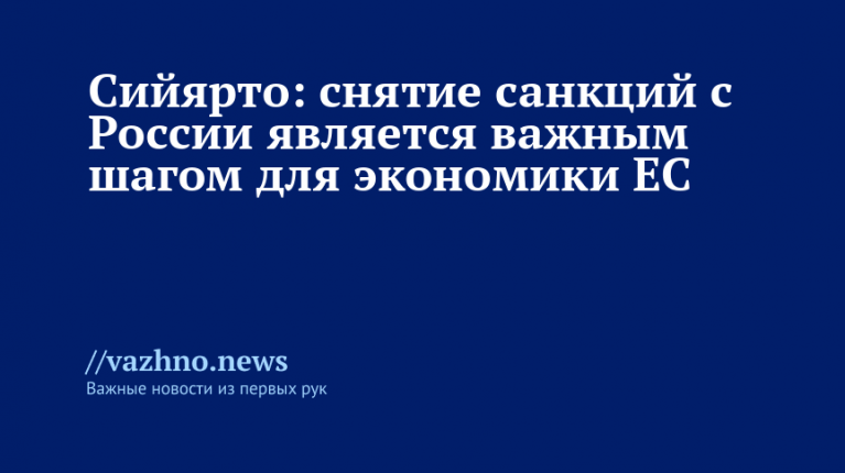 Введение отмены санкций в отношении России венгерский министр назвал значимым для экономики Европейского союза (ЕС). Такое заявление 21 ноября сделал министр иностранных дел и внешнеэкономических связей Венгрии Петер Сийярто.