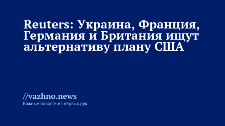 По сведениям агентства Reuters, 21 ноября власти Украины, Франции, Германии и Великобритании заняты разработкой встречного варианта к мирной инициативе США. Источники агентства указывают, что речь идет о подготовке контрпредложения к американскому плану урегулирования.