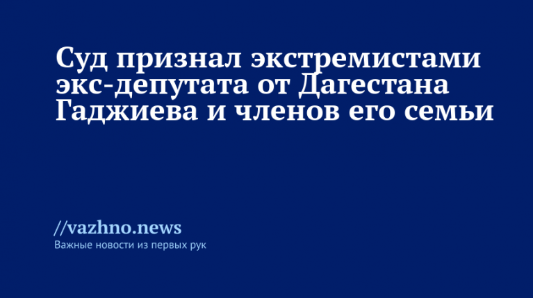 «Суд признал Гаджиева М.Т., его сына, сестру и сожительницу участниками экстремистского объединения и в связи с установленными фактами оказания с их стороны материальной и иной поддержки вооруженной агрессии киевского режима против народа Донбасса, запретил их деятельность на территории РФ», — указано в Telegram-канале судов.