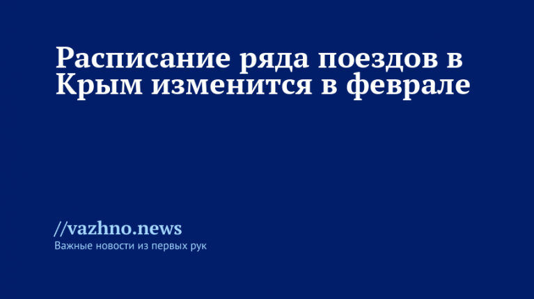 В феврале будет скорректировано расписание некоторых поездов, следующих в Крым и обратно. Временные неудобства объясняют ремонтом железнодорожных путей, сообщили в Telegram-канале компании-перевозчика.