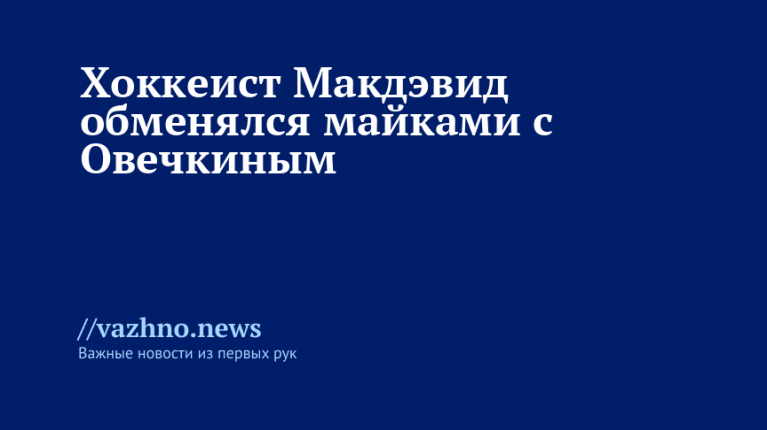 Капитан хоккейного клуба (ХК) «Эдмонтон Ойлерз» Коннор Макдэвид после матча в рамках Национальной хоккейной лиги (НХЛ) обменялся майками с нападающим «Вашингтон Кэпиталз», россиянином Александром Овечкиным. Встреча между командами прошла 20 ноября и закончилась в пользу столичной команды — со счетом 7:4.