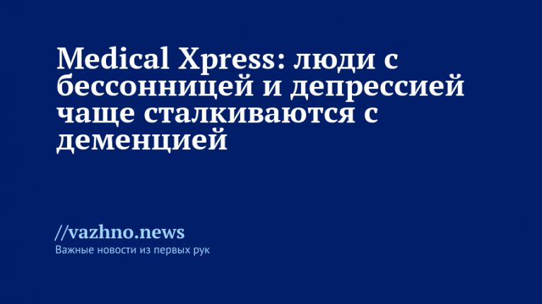 Ученые обработали медицинские данные примерно 2 млн пациентов. В результате они установили, что сочетание депрессии и бессонницы связано с повышением риска деменции на 91%. У пациентов только с депрессией риск составил 70%, а при наличии лишь бессонницы — 11%. Отмечено также, что эти показатели не зависят от расовой принадлежности.
