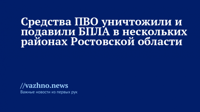 ПВО уничтожили и подавили БПЛА в районах Ростовской обл.