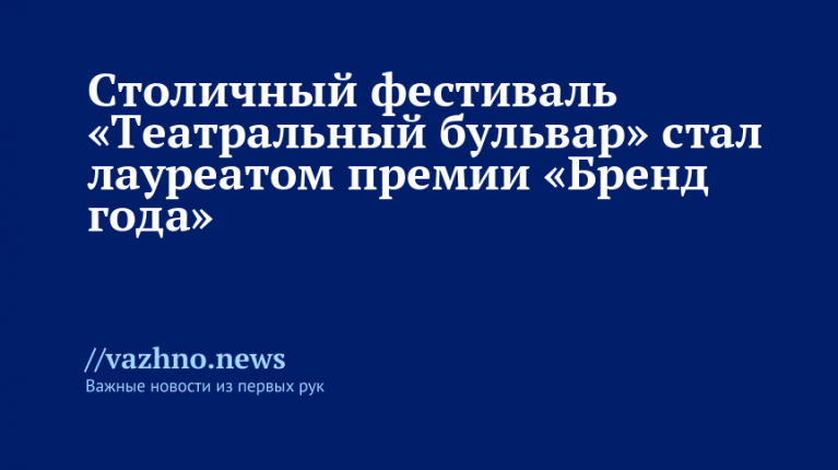 Международный открытый фестиваль «Театральный бульвар» удостоился звания лауреата национальной премии «Бренд года в России», получив три награды. Об этом сообщила заммэра Москвы Наталья Сергунина.