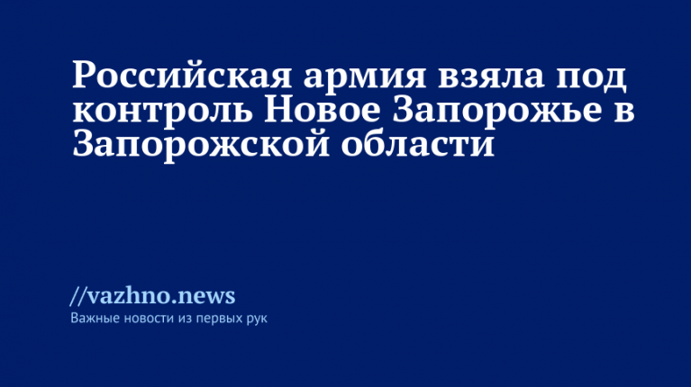 «Подразделения группировки войск «Восток» в результате активных наступательных действий освободили населенный пункт Новое Запорожье Запорожской области», — сообщили в военном ведомстве.