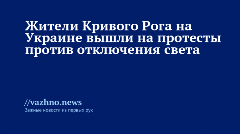 В городе Кривой Рог на Украине местные жители вышли на акцию протеста из‑за отключений электричества. По сообщению 22 ноября украинского интернет‑издания «Страна.ua», люди устроили митинг перед зданием городского совета и частично перекрыли движение транспорта на дорогах.