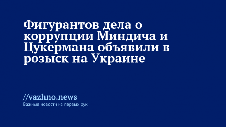 Фигурантов коррупционного дела на Украине — Тимура Миндича и Александра Цукермана — официально объявили в розыск на территории страны. Сообщение об этом появилось 22 ноября в материале «Интерфакс-Украина», где отмечено, кто и когда внес данные фамилии в списки розыска.