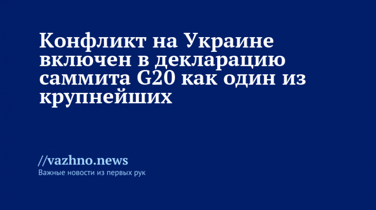 Представитель президента ЮАР Винсент Мангвенья сообщил, что конфликт на Украине включен в декларацию саммита G20 и отнесен к числу четырех крупнейших международных конфликтов.