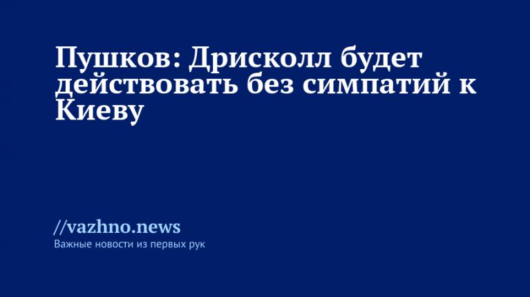 Новый спецпредставитель США по Украине Дэниел Дрисколл, по мнению российского сенатора Алексея Пушкова, будет вести работу без излишних чувств к Киеву. Такое заявление он сделал 22 ноября.