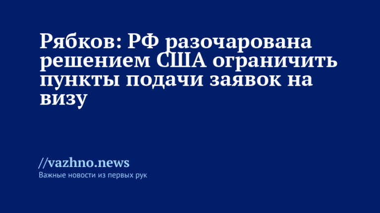 Россия выразила сожаление в связи с решением США ограничить для граждан РФ пункты подачи визовых заявлений только двумя городами — Варшавой и Астаной. Об этом 22 ноября сообщил заместитель министра иностранных дел России Сергей Рябков в интервью журналу «Международная жизнь».