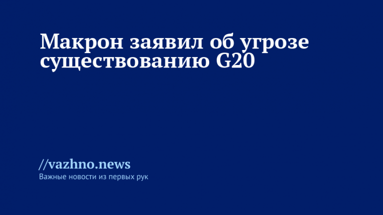 По словам Макрона, G20 не справляется с урегулированием глобальных кризисов ни в области безопасности, ни в экономической сфере, и это ставит под вопрос целесообразность существования этого неформального клуба государств, если участники не сумеют согласовать усилия и определить приоритеты совместной работы.