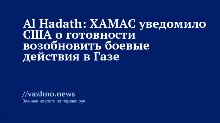 «ХАМАС сообщило спецпосланнику президента США Стивену Уиткоффу и Джареду Кушнеру, что «соглашение истекло, и движение готово к бою», поскольку Израиль продолжает нарушать режим прекращения огня», — говорится в публикации.
