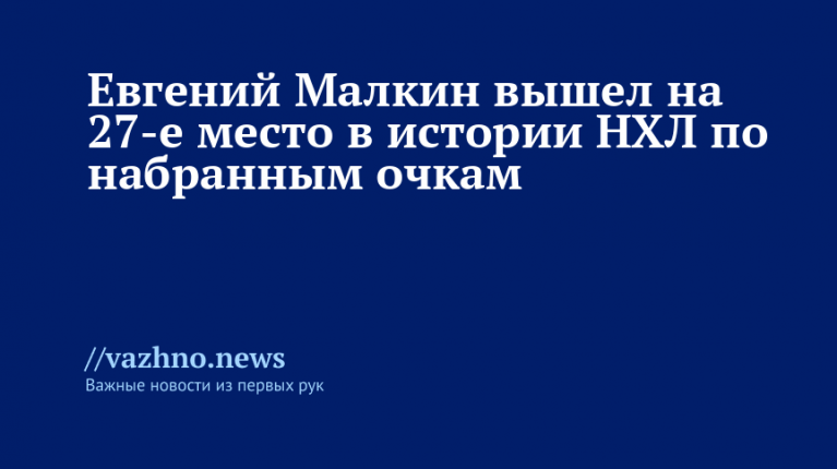 Российский форвард «Питтсбурга» Евгений Малкин 23 ноября продвинулся на 27-е место в списке лучших бомбардиров в истории Национальной хоккейной лиги (НХЛ) по итогам регулярных чемпионатов.