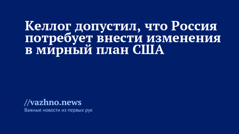 Спецпосланник президента США Кит Келлог 22 ноября не исключил, что Москва может потребовать внести корректировки в предложенный мирный план по Украине.
