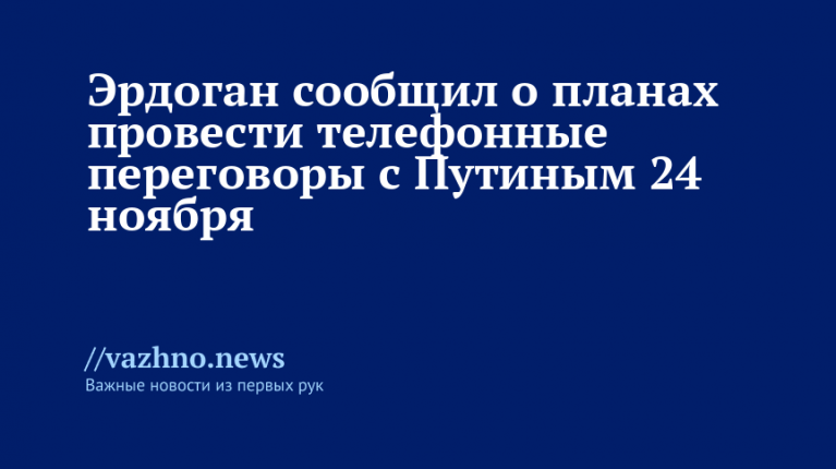 Эрдоган сообщил о планах телефонного разговора с Путиным 24 ноября