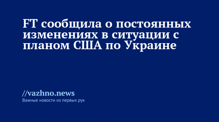 Состояние мирного плана США по Украине продолжает меняться и остается под большим вопросом. Об этом 23 ноября сообщила газета The Financial Times (FT), ссылаясь на неназванного западного представителя.
