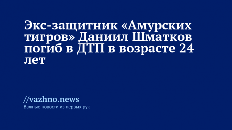 Бывший защитник хоккейного клуба «Амурские тигры» Даниил Шматков скончался в 24 года в результате дорожно-транспортного происшествия. Пресс-служба клуба сообщила об этом 22 ноября, подтвердив гибель экс-игрока.